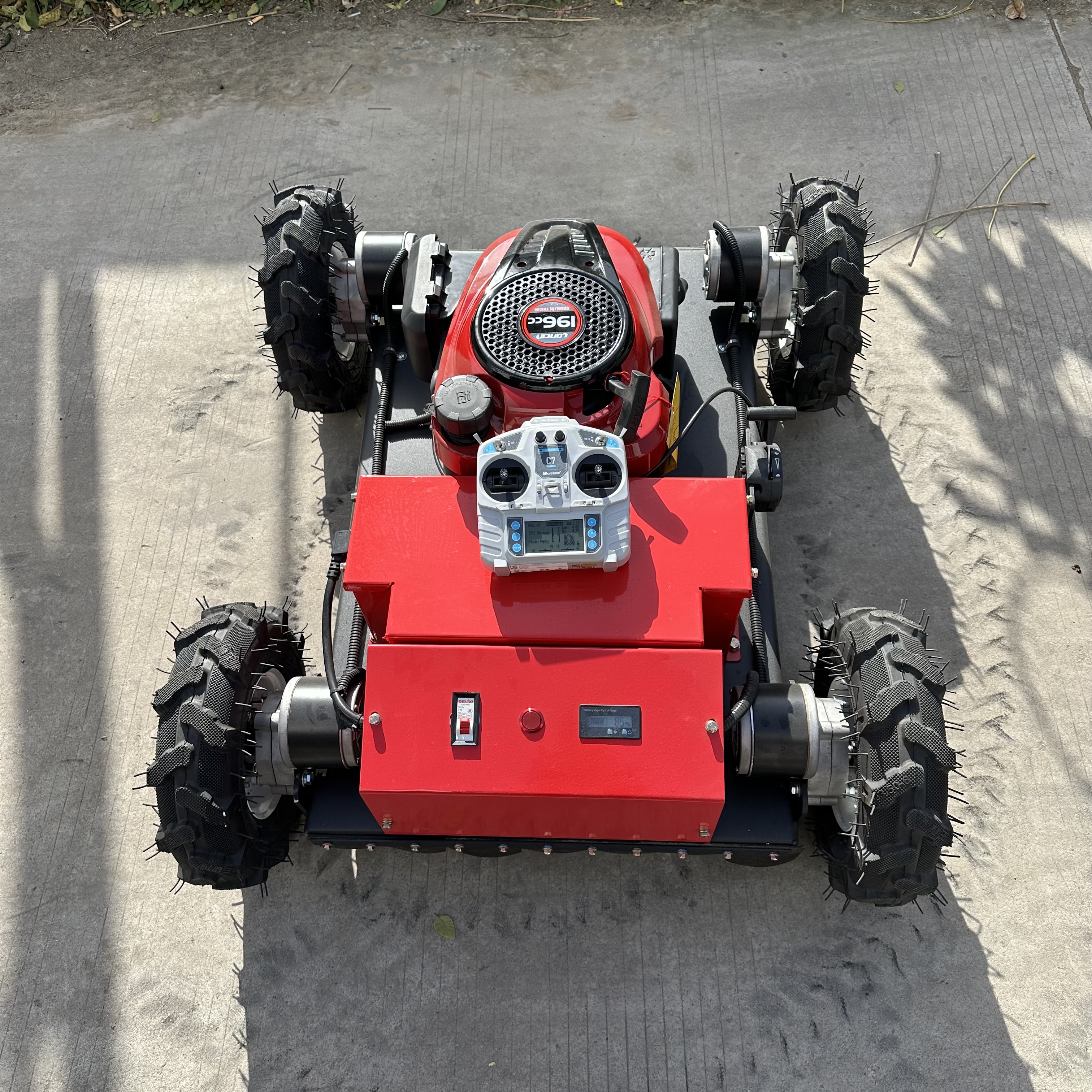 The RY-196 remote-controlled lawn mower is a hybrid electric vehicle with an integrated generator that automatically recharges during operation. It utilizes an industrial remote control device, ensuring simple operation, low failure rate, and a remote control distance of 200 meters. It is particularly suitable for flat terrain such as residential green spaces, lawns, and parks. The product is reliable. Inquiries are welcome.