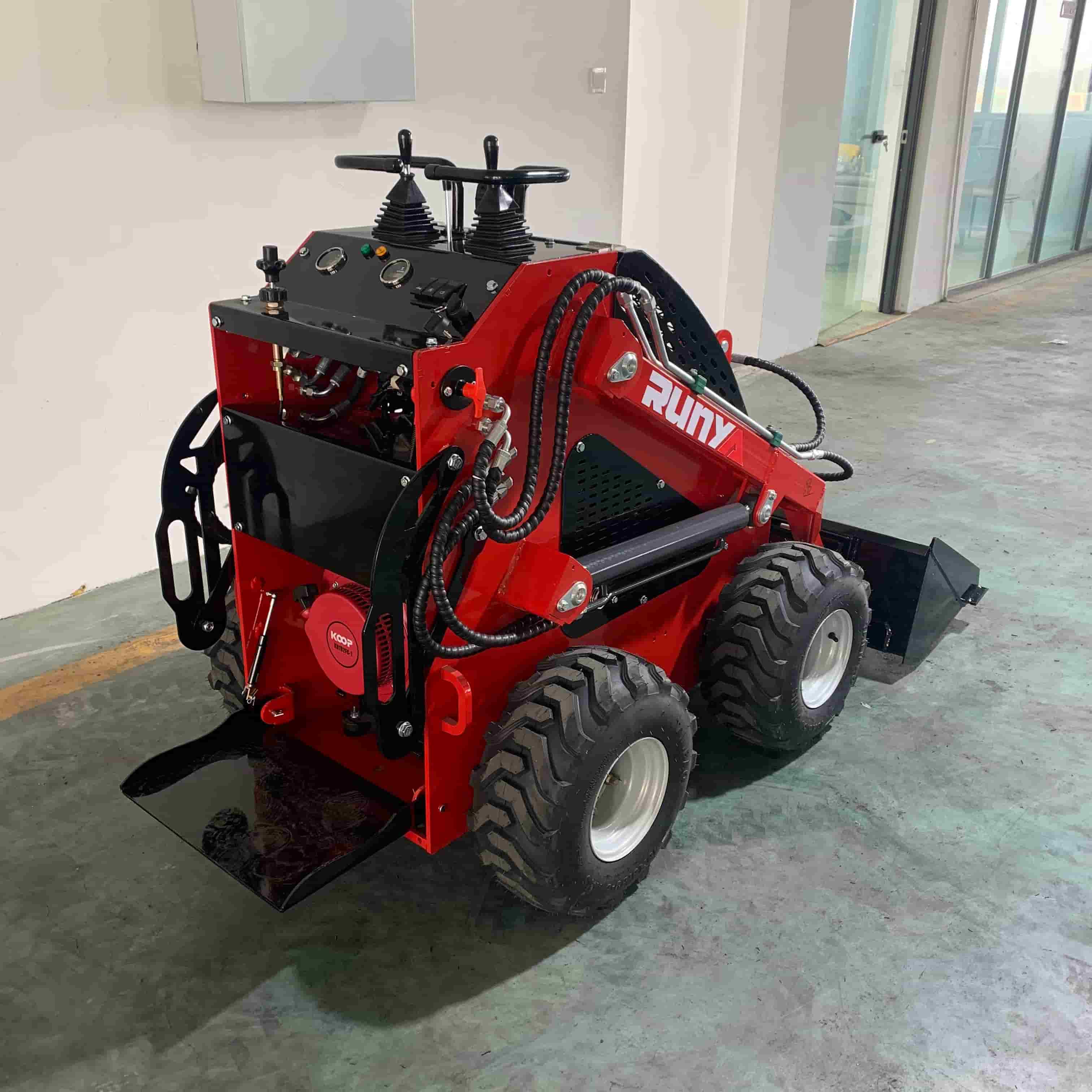 The RY-S360 mini skid steer loader features a wheeled design. Its compact size makes it easy to operate and maneuver. Its engine can be customized to meet Euro V and EPA emission standards. It is CE certified and can be used with or without auxiliary equipment for tasks such as gardening and clearing snow from roads. We welcome your inquiries.